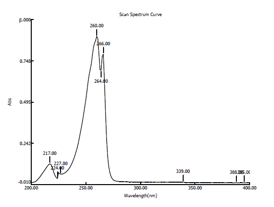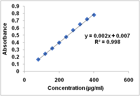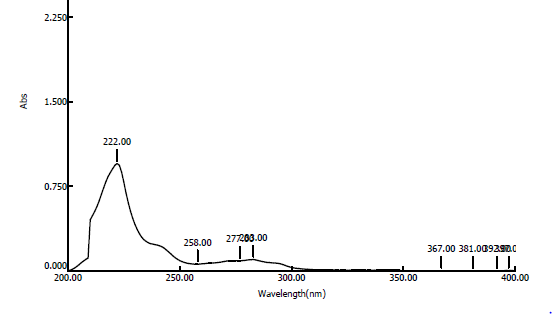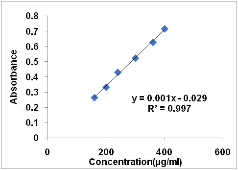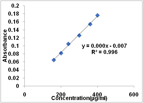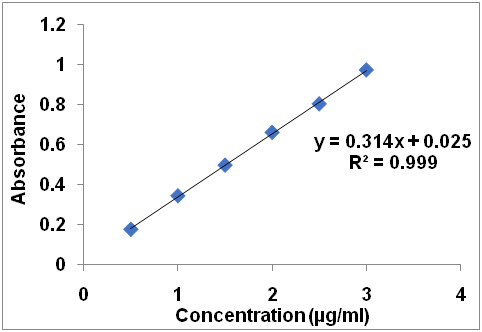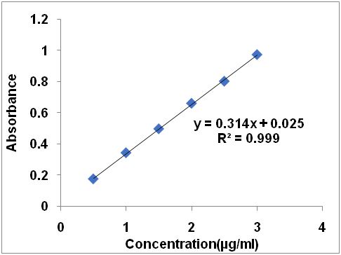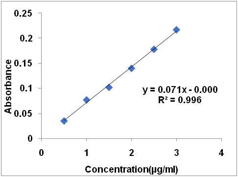 Standard known concentration solution (3.0 µg/ml in HCl) was scanned in the range of 400-200 nm using a UV-visible spectrophotometer to get the absorption maxima.
