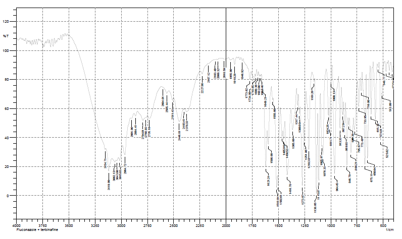Fluconazole (FLZ) is 2-(2,4-difluorophenyl)-1,3-bis(lH-1,2,4-triazo1-yl)propan-2-ol. Fluconazole is a synthetic triazole with antifungal activity. It is a well-established first-line management option for both localized and systemic C. albicans infections. Fluconazole is used against superficial and systemic candidiasis and in the treatment of cryptococcal infections for patients with the acquired immunodeficiency syndrome [5, 6]. Fluconazole main targets the heme protein, which co-catalyzes cytochrome-P450-dependent 14 α-demethylation of lanosterol in the last stage of ergosterol biosynthesis in fungus. Fluconazole is effective against C. albicans infections at a wide range of body sites and tissues, irrespective of the patient's immune status [7, 8]. Therefore, the present study aims to develop and validate the simultaneous estimation method of terbinafine hydrochloride and fluconazole in pure form.