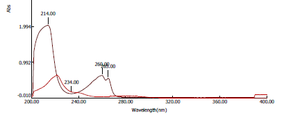 For the proposed method, the t-value found from the t-test indicates good reproducibility, and results are shown in table 7. The T-value of both the drugs was 0.8857, 0.4000 at 222 nm, and 239 nm in TH, wherein FLZ was 0.8000, 0.5066 respectively. Both the drug shows no significant difference.