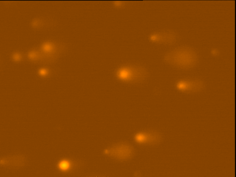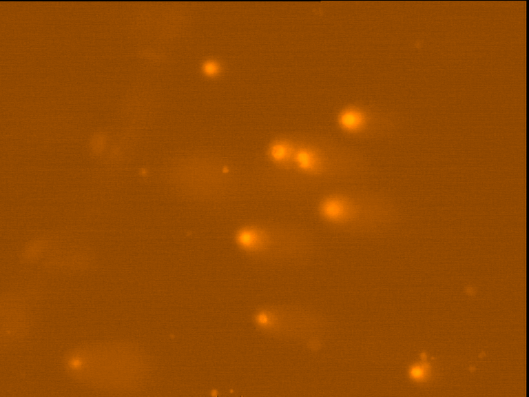 Fig. 4: Comet images of the Raji cell sub-lines after treatment with 25 nM DOX for 48 hours in 37°C and 5% CO2. TK+ treated cells (left). And TK- treated cells (right), as photographed with the Leica microscope below X 200