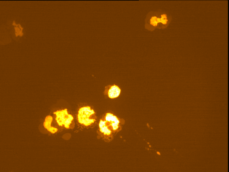 Typical apoptotic cells under a light microscope show small, highly condensed chromatin bodies. Each apoptotic body has a fragmented piece of nucleus surrounded by a viable cell membrane. This can be easily differentiated from a normal cell under a light microscope [31]. Necrosis usually involves groups of contiguous cells and leads to swelling of the cytoplasm and irreversible failure of cell organelles.