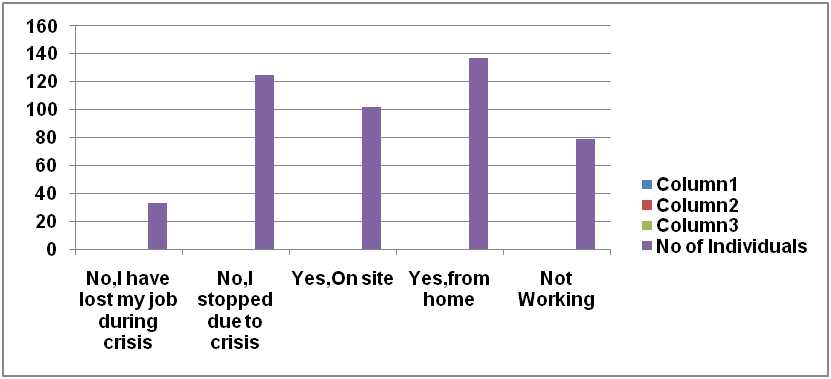 In our study, 28.7% of respondents were working from the Home, 21.4% were working on-site, 21.4% of respondents were stopped working due to crisis, and 6.9% were lost their jobs due to crisis. At the time of data collection, in the total 476 respondents, 3.1% of people were infected with COVID.