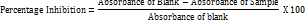 The concentration of the extract required to scavenge 50% of the radicals was calculated by plotting a graph of % inhibition vs concentration [13].