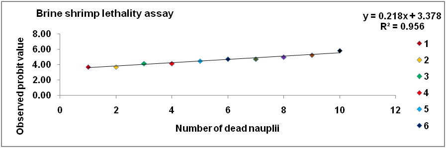 Fig. 1: The LC50 calculation graph number of dead nauplii against observed probit value