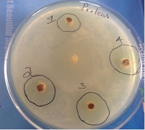 Fig. 1: Inhibition zones observed with extract in Proteus