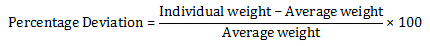 Twenty tablets were selected randomly and weighed individually. The weight was calculated and individual weight was compared to the average weight. The percentage deviation of each tablet was calculated as the formula below.