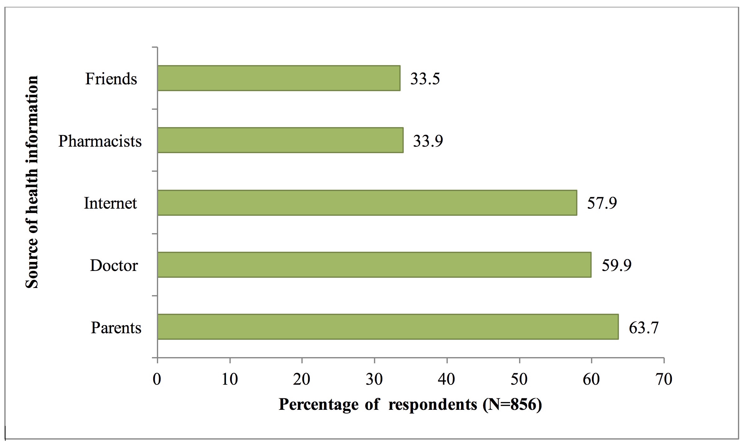 More than half of the respondents would search for health information via the internet. Similarly, studies in Malaysia and Oman had reported high usage of internet for searching health information (85.7% and 89%, respectively) [29, 30]. This may be attributed to the convenience of retrieving information from the internet as current university students are a new breed of millennials who are digital natives and have been trained to use electronic devices since young age [30, 31]. However, the concern is the ability of university students to identify reliable sources of information and to interpret them correctly to overcome their health conditions [9].