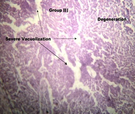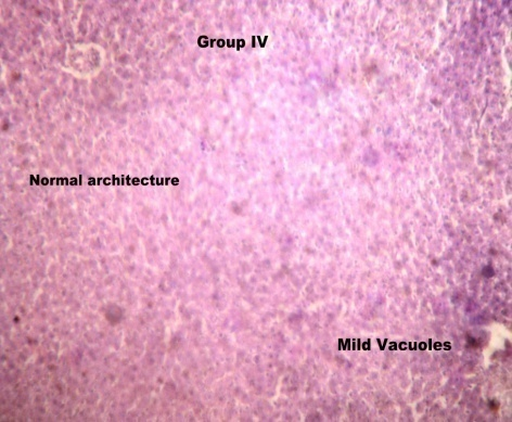 | Histopathological view of liver Section of Group III rats | Histopathological view of liver Section of Group IV rats |