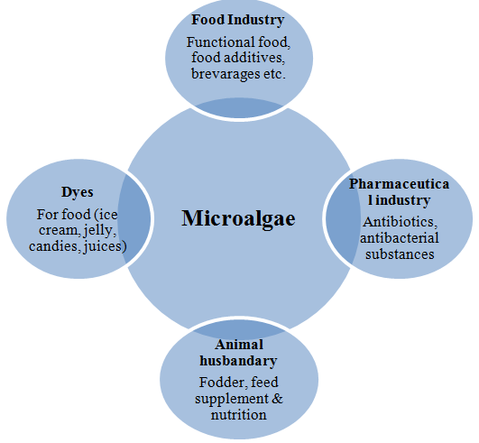 Fig. 1: Application of microalgae in different fields (Hemantkumar and Rahimbhai, [1]