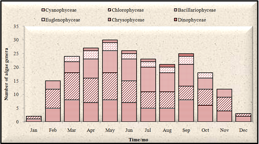 Fig. 2: Monthly occurrences of algal species in Assam [9, 13]