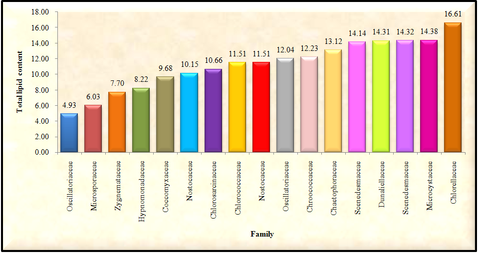 Fig. 4: Total lipid content of the oleaginous algal species isolated from Assam [13]