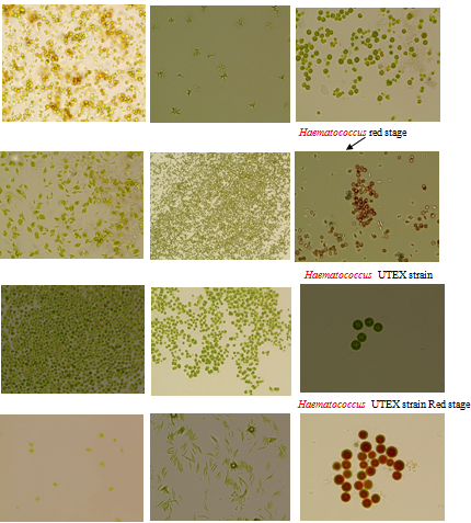 Haematococcus sp. with a concentration of 30 ppm of sodium bicarbonate can develop in BG11 media. The best growth of Haematococcus sp. strain was observed in CO2 gas at 4758 mg/l (134.1 mg/l for 7 d) and 30 ppm bicarbonate (72.9 mg/l/day for 17 d) [18]. Various studies report Haematococcus sp. from different regions within Assam. Using the Winogradsky Column, it was among the algal varieties isolated from the Guwahati Panikhaiti area, Assam [69]. Further Haematococcus sp. was reported from Umiew river in Meghalaya [70] and vegetable fields of Cachar district, Assam [71]. The Haematococcus sp. is grown commercially either in controlled photobioreactors or in large-scale outdoor systems. Though this species is reported from different localities within North East India, until now, no reports are present for characterisation of bioactive metabolites from this particular strain. This opens up many avenues for characterization starting from culture parameters optimization to value added chemicals extraction including astaxanthin from this endemic potential strain.