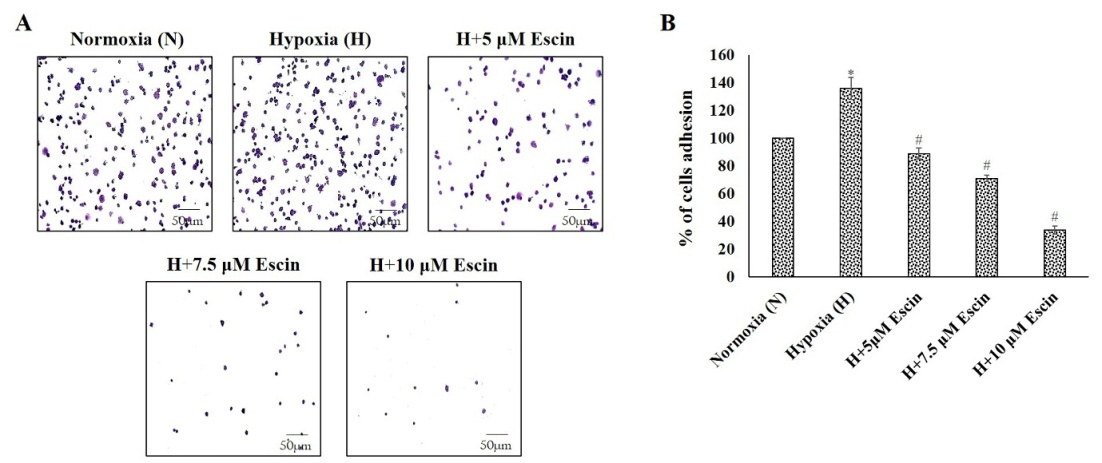 Effect of escin on NCI-H23 cells adhesion under hypoxia mimicked condition