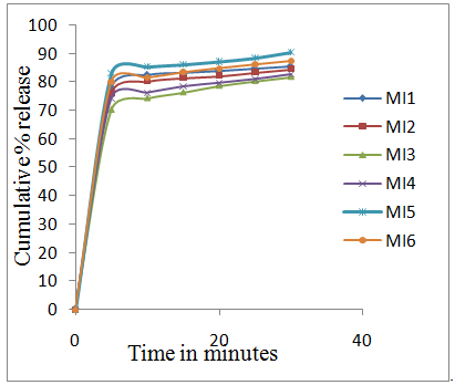 Fig. 3: Dissolution profiles of formulation MI1-MI6