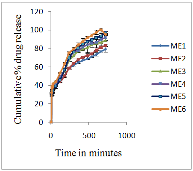 Fig. 4: Dissolution profiles of formulation ME1-ME6