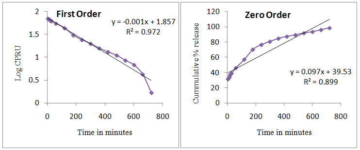 The release rate of Propranolol hydrochloride bilayer tablets was determined by using Dissolution testing apparatus USP type II (Paddle type) (Electro lab). The dissolution testing was performed using 900 ml of 0.1N HCl at 37±0.5°C temperature and speed 50 rpm. The 5 ml aliquots were withdrawn at intervals of 5, 10, 15, 20, 25, 30, 60, 120, 180, 240, 300, 360, 420, 480, 540, 600, 660, 720 minutes and replacement was done each time with equal amounts of fresh dissolution medium maintained at same temperature. Each 5 ml aliquot was filtered through Whatman filter paper (No.41). 5 ml of the sample was diluted to 10 ml 0.1N hydrochloric acid for first 2 hours and then with pH 6.8 phosphate buffers for next 10 hours and absorbance was measured at 290 nm using UV/Vis spectrophotometer (JASCO V-550).