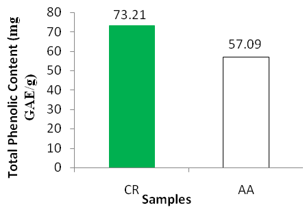 Fig. 2: TPC values of both samples Where CR = C. roseus and AA = A. aspera