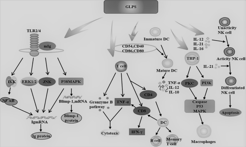 Another activity of GLPS by I. V 80 mg/kg injected to rats shown delay sleeping time or recover sleeping superiority. Various studies established, GLPS can build the degree of SOD or certain quantities of leucocytes. While in 3 autonomous studies examined the antibacterial activity of GLPS as well as another study detected the anti-skin ageing purpose of GLPS via rises mutually hydroxyproline or SOD substance in concentration-dependent manner. More studies exhibit GLPS is hepatoprotective in metabolic aberrations of diabetic mice, avoids or interruptions development of diabetic renal difficulties as well as GLPS helps blood circulation and eliminates blood stasis [28].
