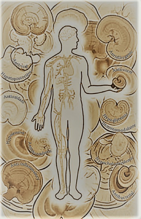 Ganoderma lucidum has been effective for treatment of several disease with most significant Pharmacological or Physiological results such as immunomodulatory, immunodeficiency, anti-cancer, anti-oxidant (radical scavenging properties), antiallergic, anti-inflammatory, antiparasitic properties, anti-viral (AIDS, HIV infections), anti-bacterial, anti-atherosclerosis, anti-androgenic, anti-diabetic (hypoglycemic), anti-fungal, anti-aging, stroke, anti-fibrotic, antiherpetic property, prevention of obesity, hypolipidemic, kidney tonic, heart diseases (hypertension), stimulation of probiotics, stomach ulcers, effects on nervous system (sleep-promoting, stress, mental fatigue, migraine), liver diseases (liver detoxification, hepatitis), arthritis, reduction of lower urinary tract symptoms, nephritis, bronchitis, asthma [35-40, 28-31, 18-22, 26, 33].