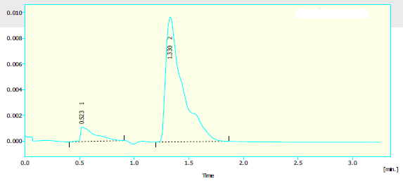 Methods: Elution was carried out using a mobile phase consisting of Acetonitrile & Methanol (50:50 v/v) and the flow rate was set to 1.6 ml/min at 216 nm, retention time for Artemether was found to be 1.330 min.