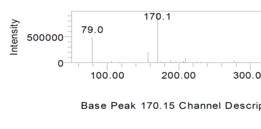 The m/z for DP-3H is 170.1 which suggest the degradation of benzene ring and five-member ring in TRZ structure. Another MS peak of 79 is because of solvent DMSO [M+H]+.