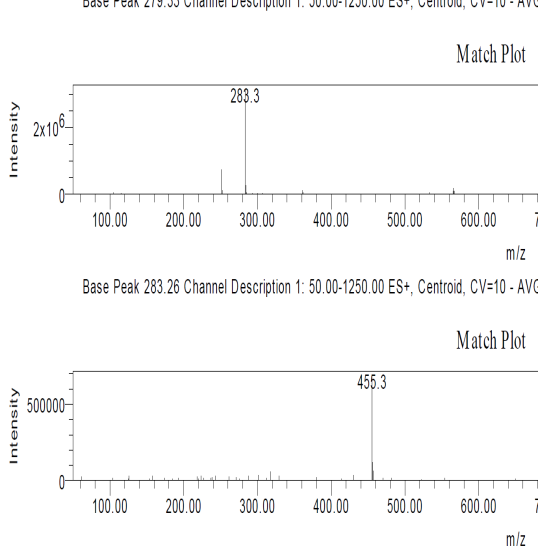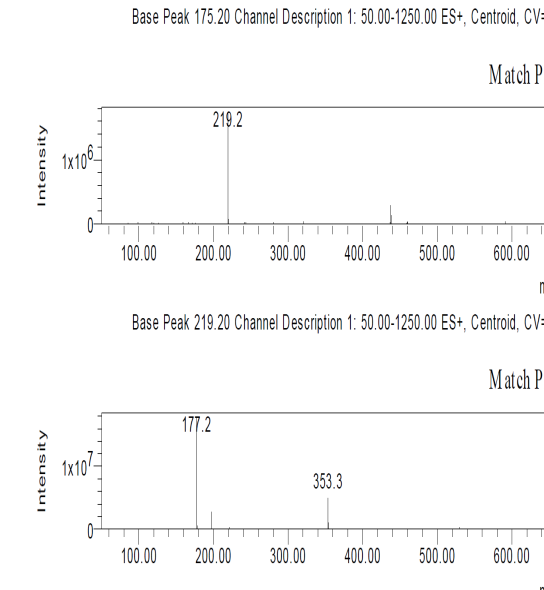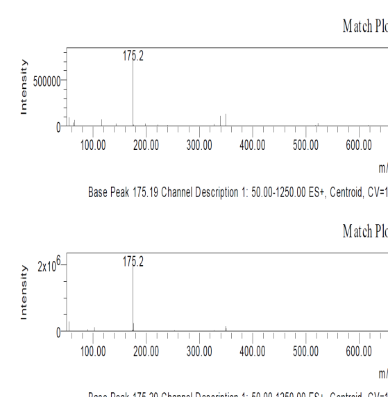 MS/MS data were obtained on system (Thermoscientific, USA) with MS plus pump and autosampler. TSQ Quantum access max mass spectrometer was used for analysis. The MS system used spray electron ionization in positive mode with voltage 3500V, Capillary temperature was 300 °C. The Mass transition was observed for M1 and M2 level with collision energy 34 eV for both transition. Xcalibur Software was used for data analysis (Thermo Fisher, USA).