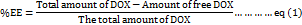 Entrapment efficiency (%EE) of DOX SLNs formulated batches