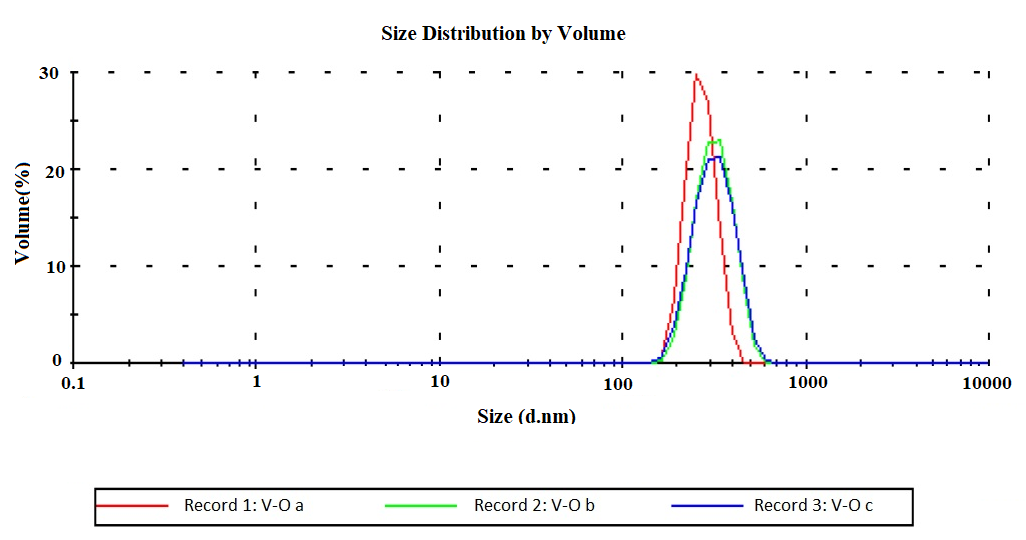 Plot for the size distribution vs number for batch V-O (n=3)