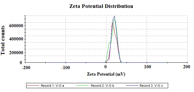 (b) Plot of zeta potential distribution for the batch V-O (n=3)
