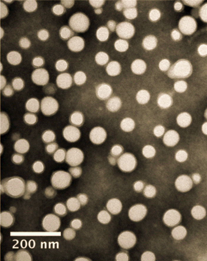 Morphological inspection of DOX SLNs using TEM analysis showed that SLNs were spherical (fig. 9) and were in the size range of 150-200 nm, which was based on the dynamic light scattering theory, in further agreement with the size distribution performed using Zetasizer. From fig. 9 It was noted that the particles of the SLNs had a uniform distribution of size, confirmed by Zetasizer, showing a PDI value below 0.25, suggesting no aggregation.