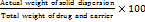 The Solid dispersion equivalent to 10 mg of drug was dissolved in 10 ml of ethanol, filtered, diluted, and drug content was determined using UV spectrophotometer at λmax of a drug against ethanol as a blank. Analysis of each sample was carried out in triplicate [13].