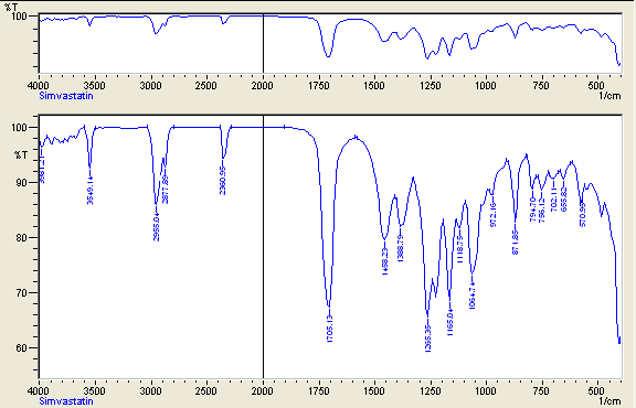 Solubility of simvastatin was determined by the shake flask method in different solvents like water, ethanol, methanol, chloroform, phosphate buffer pH 6.8, and phosphate buffer pH 7.4. Saturated solutions of simvastatin were prepared in different solvents and were stirred for 24 h using a rotary shaker. The solution was then filtered through Whatmann filter paper. The concentration of simvastatin was determined using a UV spectrophotometer against the respective solvent as blank at λmax of drug [8].