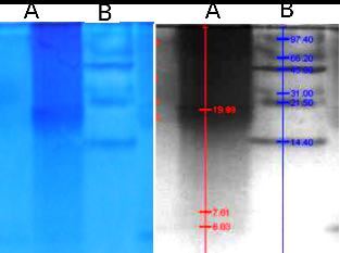 Fig. 1: Native PAGE of 40% DF A–sample, B–marker protein