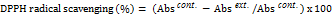 Where, Abscont. is absorbance of control and Absext./std. is absorbance of extract/standard.