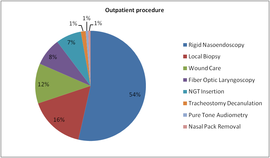 The most common procedure performed in outpatient clinics is rigid endoscopy with a total of 151 procedures (54%), followed by local biopsy with 46 procedures (16%) (fig. 2).