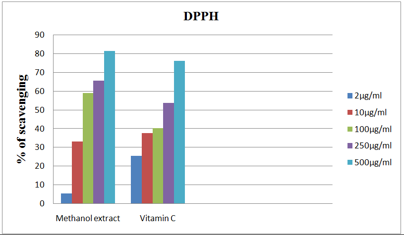 | Parameter | Conc μg/ml | Methanol extract | Positive control (Vitamin C) |