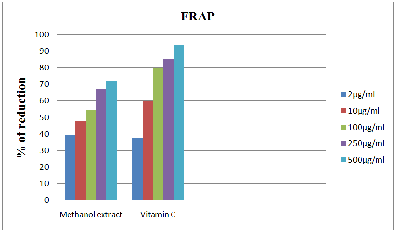 Fig. 2: Iron chelating activity (FRAP) of methanol extract of Toddalia asiatica