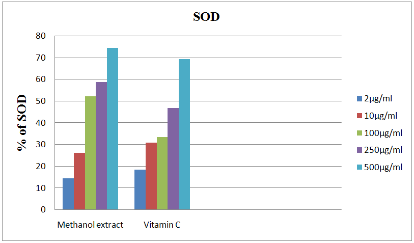 Fig. 3: Superoxide dismutase activity (SOD) of methanol extract of Toddalia asiatica