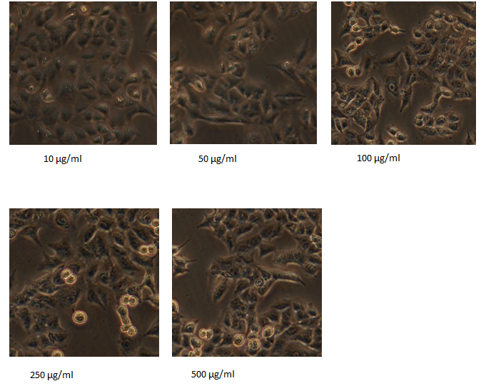 Fig. 5: Morphological representation of Cytotoxicity of methanol extract of leaves of Toddalia asiatica on MCF7 cell line