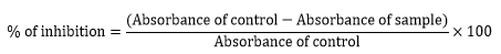 Percentage scavenging of superoxide anion examined at different concentrations of methanolic extract of Toddalia Asiatica (2 – 500 μg/ml) is given in Fig. 3. The scavenging activity was found to increase with increase in concentration. The maximum scavenging activity of methanolic extract at 500 µg/ml concentration was found to be 79.7% (table 2). Superoxide scavenging ability of methanolic extract might primarily be due to the presence of flavanoids [18]. The nitric oxides radical inhibition study showed that Toddalia asiatica methanol extract was a potent scavenger of nitric oxide (Fig. 4). Toddalia asiatica methanolic extract inhibited nitrite formation by competing with oxygen to react with nitric oxide directly and also to inhibit its synthesis.