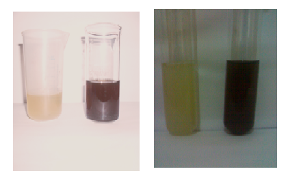 Fig. 1: Synthesis of silver nanoparticles of Brassica oleraceae by a) Conventional b) Microwave method