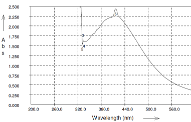 The reduction of pure Ag+ions was monitored by measuring the UV-Vis spectrum of the reaction medium after diluting the sample with distilled water. Then the sample was scanned in the UV range (200-400 nm*) range. The absorption measurements were done using a Varian Cary 50 UV-Vis spectrophotometer.