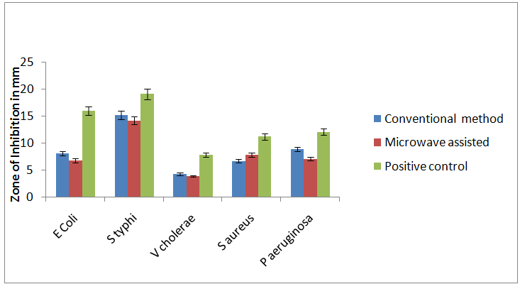 Fig. 7: Antimicrobial activity of silver nano particles of Red cabbage (Conventional and microwave assisted)