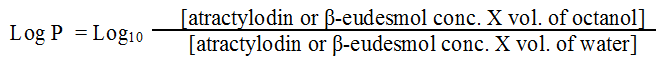 Table 1: Experimental Log P and Log D values of atractylodin and β-eudesmol determined by shake-flask method and comparison with the available predicted values from the three in silico platforms ACD/labsTM, EPISuiteTM, and XLogP3TM