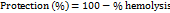 The HRBC membrane protection percentage was calculated with Eq. (2):