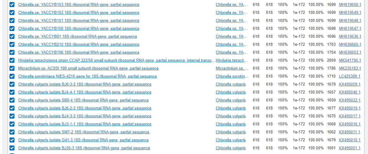 Fig. 3: NCBI blast results shows 100% homology with Chlorella vulgaris