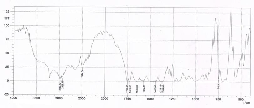 Observed characteristics were N-H stretching at 3400 cm1, CH alkane stretching at 2926 cm1, CO-NH stretching (C=0) at 1640 cm1, NH bending at 1425 cm1 and CN aromatic amine at1243 cm1 as shown in fig. 1.