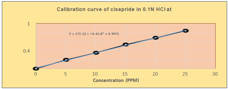Calibration curve of Cisapride Hydrochloride: Calibration curve for Cisapride hydrochloride was taken in 0.1 N HCl [16].
