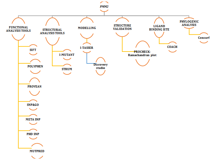 Fig. 1: Diagrammatic representation of computational tools used for Insilico analysis of the PMM2 gene
