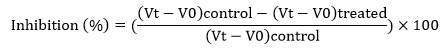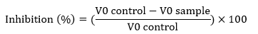 Where V0 control is the enzyme activity without the inhibitor, and V0 sample is the activity of the enzyme with the inhibitor